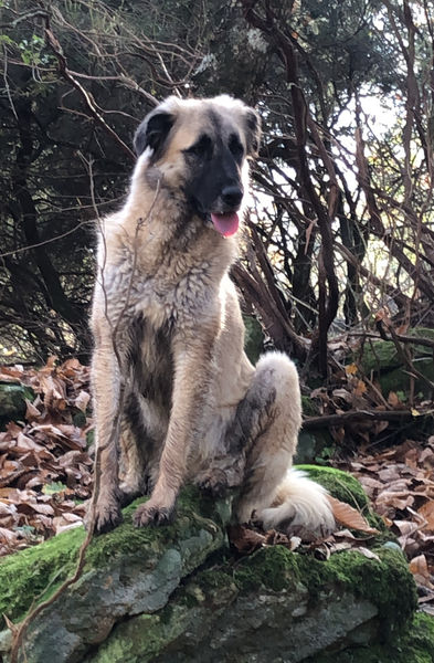 Zoe è una cagnolona probabile incrocio tra Pastore Belga Malinois e Pastore Maremmano Abruzzese.